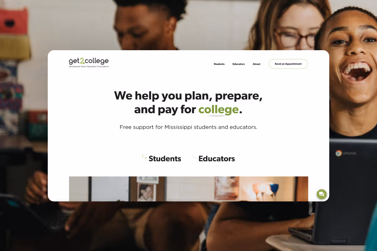 Get2College is a college access program of the Woodward Hines Education Foundation. Their team helps Mississippi students plan, prepare, and pay for college. Our team had the honor of bringing their new digital experience to life. get2college.org