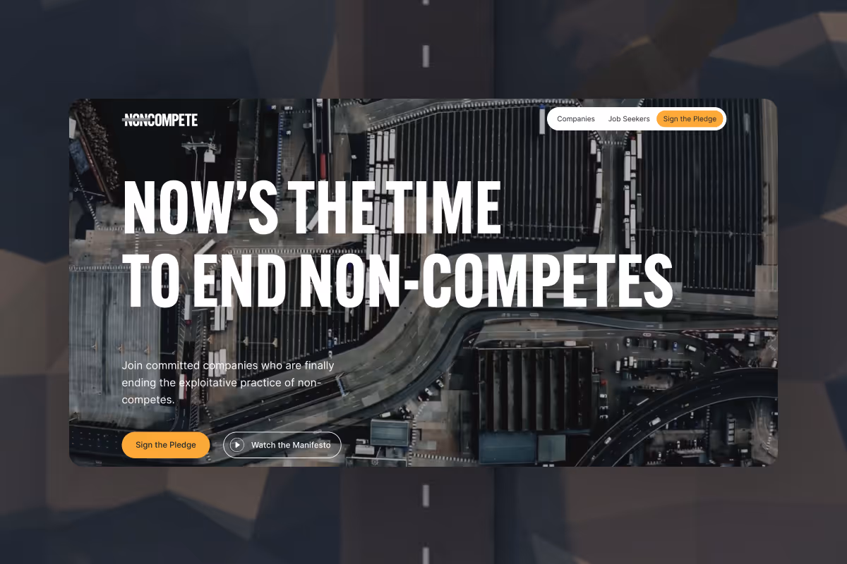 End Non-Competes is a coalition of committed companies who are finally ending the exploitative practice of non-competes. Our team had the opportunity to brand the campaign and launch the digital experience for it. Shoutout to our friends at RVRB for putting together the manifesto and roundtable films. endnoncompetes.com