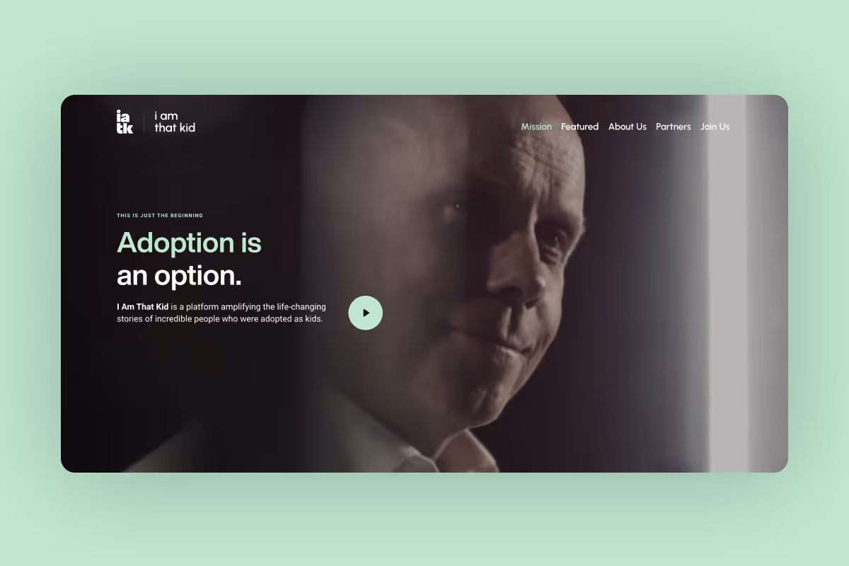 I Am That Kid is a platform amplifying the life-changing stories of incredible people who were adopted as kids. Our team had the opportunity to brand I Am That Kid and build their MVP website. So many more stories to come. iamthatkid.com