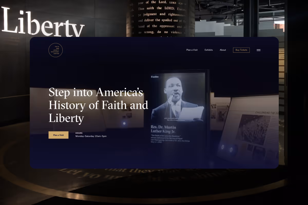 The Faith & Liberty Discovery Center is the newest interactive and immersive experience, located on Independence Mall. It's mixed-media exhibits have been hand-crafted in collaboration with Local Projects, a world leader in exhibit design. Our team had the opportunity to reimagine Faith & Liberty Discovery Center's digital experience from the ground-up. faithandliberty.org