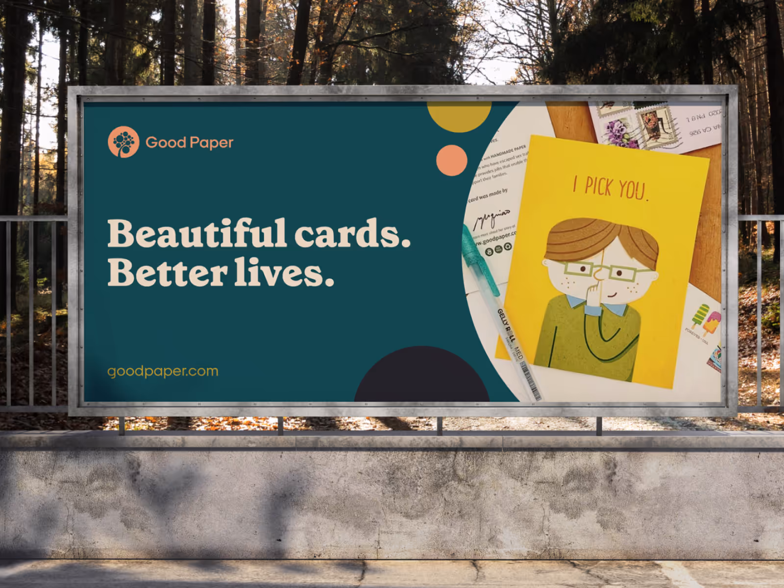 A sneak peek at a brand refresh for our friends at Good Paper, a card company on a mission to restore the human spirit. Their cardmakers are women who have escaped sex trafficking in the Philippines and young adults orphaned by disease in Rwanda. We can't wait to see the new brand and website take flight in 2024!