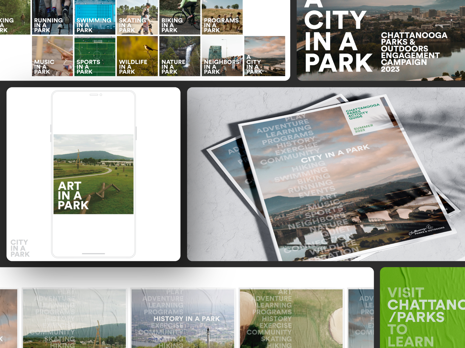 “City in a Park” is the visibility initiative of Chattanooga Parks & Outdoors. Crafted to promote the City's offerings and to stimulate public engagement, the campaign highlights impressive educational, recreational, and cultural resources and activities (not to mention the staggering volume of beautiful natural spaces) available to Chattanoogans. With its unique integration of built and natural spaces, Chattanooga boasts unrivaled accessibility to some of Tennessee's most beautiful parks and exciting outdoor resources. It's truly a city in a park.