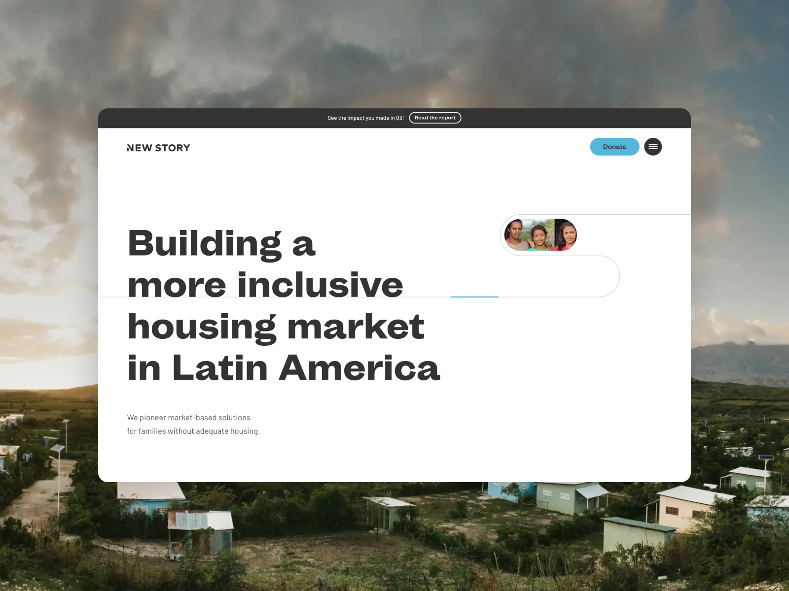 Housing impacts every aspect of our well-being: health, education, income, economies, gender equity, and so much more. But right now, more than 1.6 billion people live without adequate housing. We’re in a global housing crisis — and it’s keeping millions of families from reaching their full potential. The scale of the housing crisis is too big to depend on traditional solutions like giving away homes to families. So, they don’t. New Story partners with the market to unlock the opportunities families need to access the adequate housing solutions they want. Families are no longer beneficiaries — they’re participants. One of the highlights of our year was partnering with New Story to reimagine their digital home: newstoryhomes.org