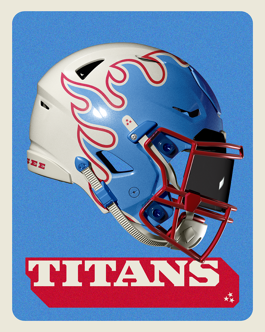 In my rebrand, the classic Oilers kit is the fuel, not the finish line. The prominent blue and classic striping logic anchor the system in heritage, but the Titans' mythology takes over from there. The result is unmistakably Tennessee: a modern identity built on history, not constrained by it.