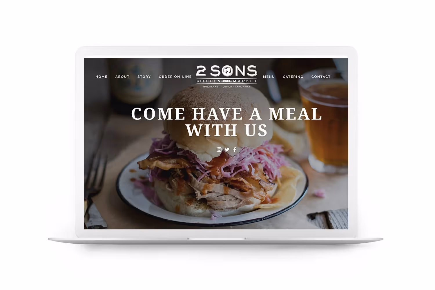 Chef Nathan Flynt had built a loyal following with his successful food truck operation and was ready to take the next step by expanding into a full-fledged brick-and-mortar restaurant. This transition required establishing a clean, professional web presence that could effectively communicate the restaurant's offerings and personality to both existing food truck customers and new restaurant diners. Whiteboard worked closely with Nathan to create an easy-to-update website that captured the straightforward, no-nonsense approach that had made his food truck successful. The design approach prioritized simplicity and functionality, allowing the appealing food photography to work seamlessly with the clean layout to present all necessary restaurant information in an accessible manner. The resulting website perfectly reflects the 2 Sons Kitchen & Market personality—honest, approachable, and focused on quality food rather than unnecessary complexity.