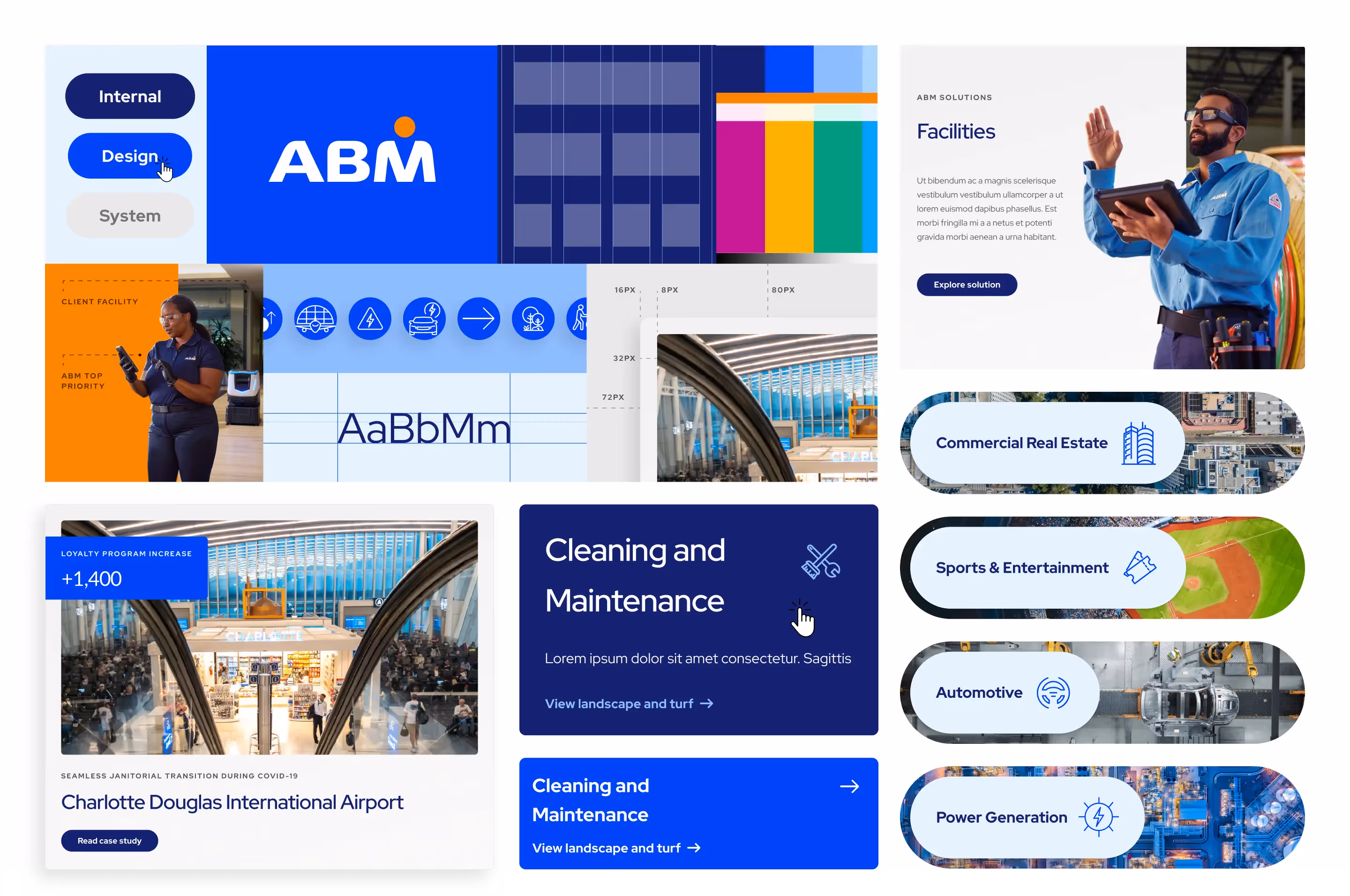 We recognized the need to shift perceptions decisively, strategically repositioning ABM as an industry innovator through intentional storytelling and user-focused design. We developed a modular digital experience in Webflow, allowing ABM to showcase targeted narratives across diverse sectors such as aviation, education, healthcare, and commercial real estate. This flexible design system balanced extensive service information with clarity while embedding their "Driving Possibility, Together" brand platform throughout. We created "ABM Perspectives," a dynamic content hub featuring industry insights that positioned them as strategic partners. The result significantly increased engagement, elevated their visibility as forward-thinking leaders, and empowered their global teams with internal tools that shortened content creation cycles from weeks to hours.
