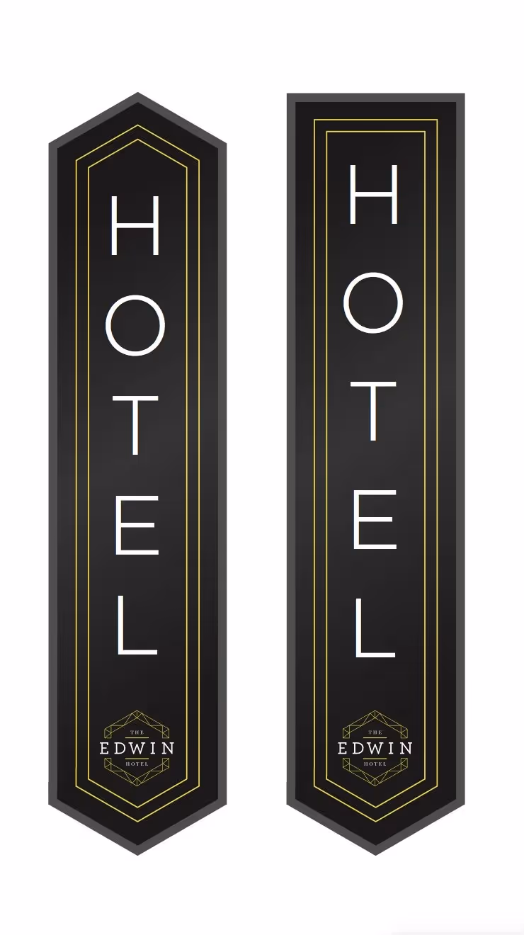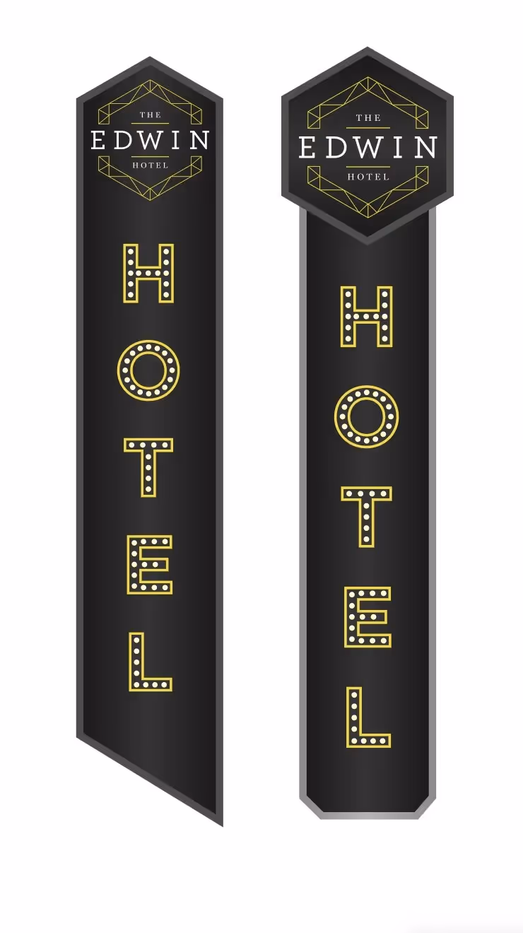 Vision Hospitality Group had successfully built and managed hotels for major brands nationwide, but creating The Edwin—their first one-of-a-kind boutique hotel project—presented new territory: branding from scratch. Located steps from Chattanooga's historic Walnut Street Bridge and positioned as the city's first luxury boutique hotel, The Edwin needed to connect the area's rich Southern hospitality heritage with modern trends and cuisines. While Vision worked with premier design firms to establish core identity and branding, they needed to connect that foundational work to practical applications like signage and print materials. Whiteboard stepped in to bridge this gap, translating the evolving hotel identity into quality materials that matched the planned space and service level. We elevated the designs by introducing vintage illustrations and gold foil stamping in print production, while sign design concepts married both the architectural elements and historical inspirations that defined the property's unique character.