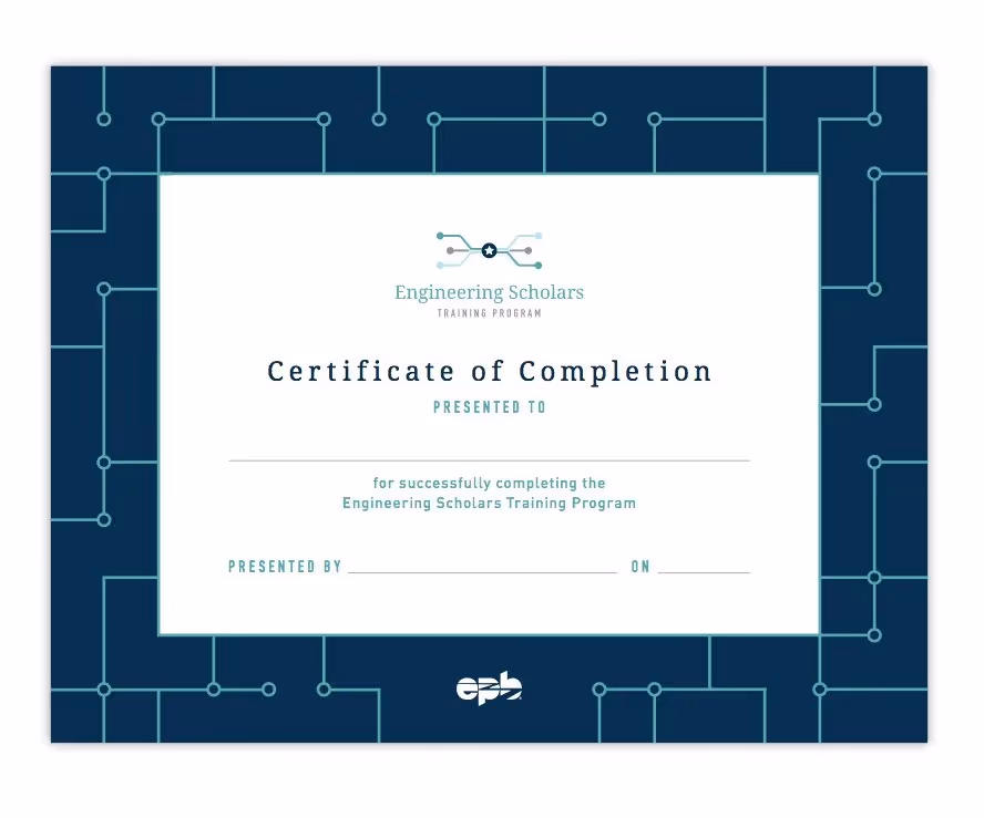 Whiteboard partnered with EPB, one of the largest publicly-owned power utilities in the United States, to develop a clean and simple identity system for their Engineering Scholars program. This innovative training initiative was designed to help EPB collaborate with some of the country's best engineering minds to develop effective and innovative smart grid technologies. Our team created a visual identity that extends EPB's trusted corporate brand while establishing the program's unique character. The design system includes comprehensive course materials and communications that reflect the program's commitment to cutting-edge utility innovation and engineering excellence.