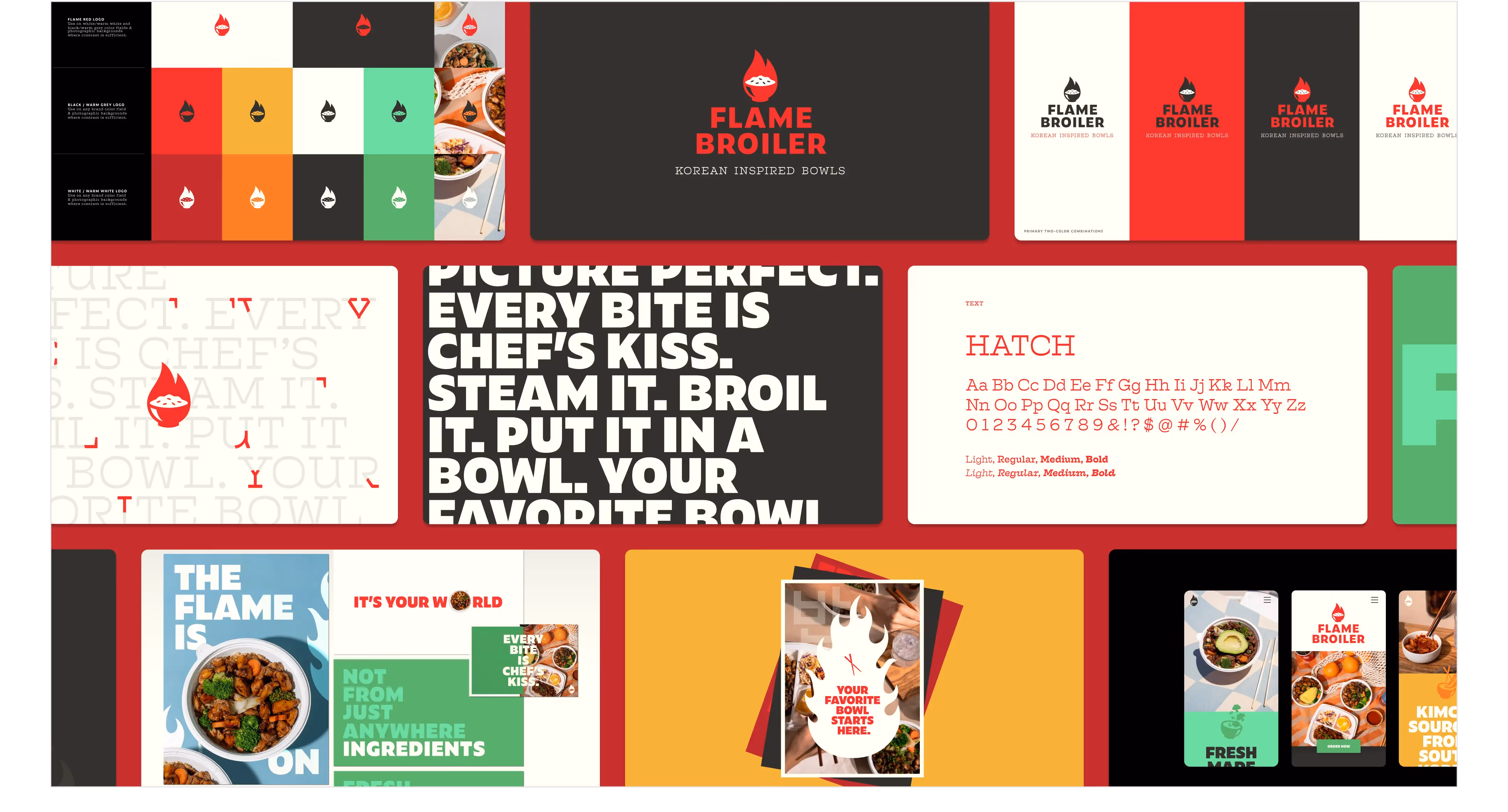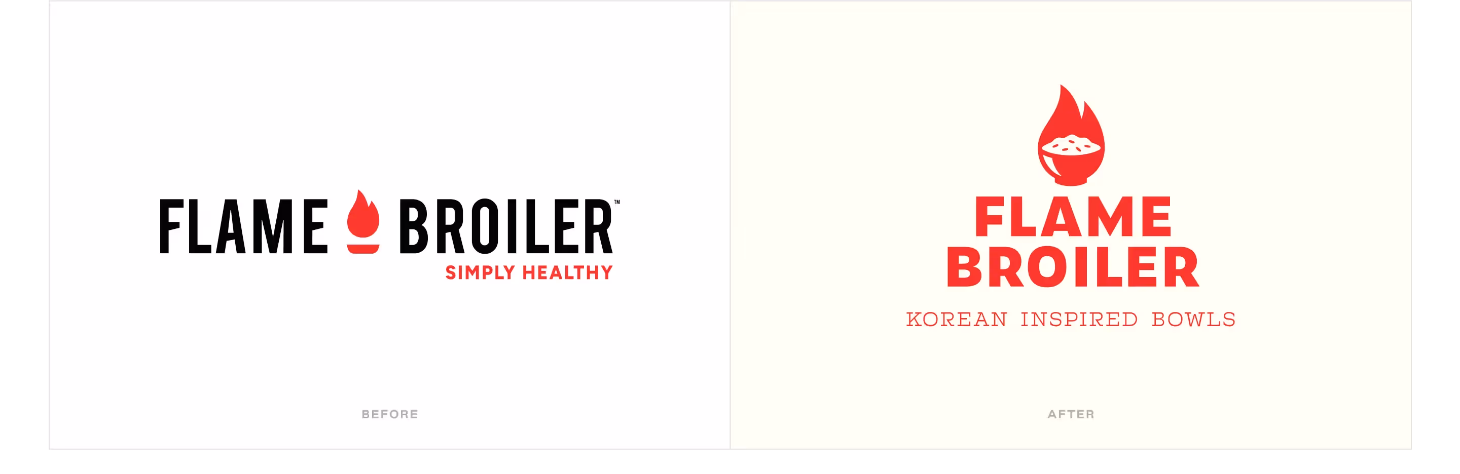 We partnered with Flame Broiler at a major inflection point as leadership transitioned to the next generation, facing the challenge of expanding a beloved regional brand nationally without losing its local feeling. Through comprehensive research including digital eating diaries, dine-alongs, and stakeholder interviews, we identified three cultural shifts perfectly aligned with Flame Broiler's heritage: Korean culture's rising popularity, holistic healthy eating trends, and demand for menu simplicity. We developed a brand strategy that capitalized on their Korean roots and quality ingredients, creating a visual identity that leveraged their heritage while capturing the history, heart, health, and heat of the brand. Our rollout strategy navigated complex franchise structures while proving measurable impact, transforming Flame Broiler into a nationally-recognized brand ready for growth.