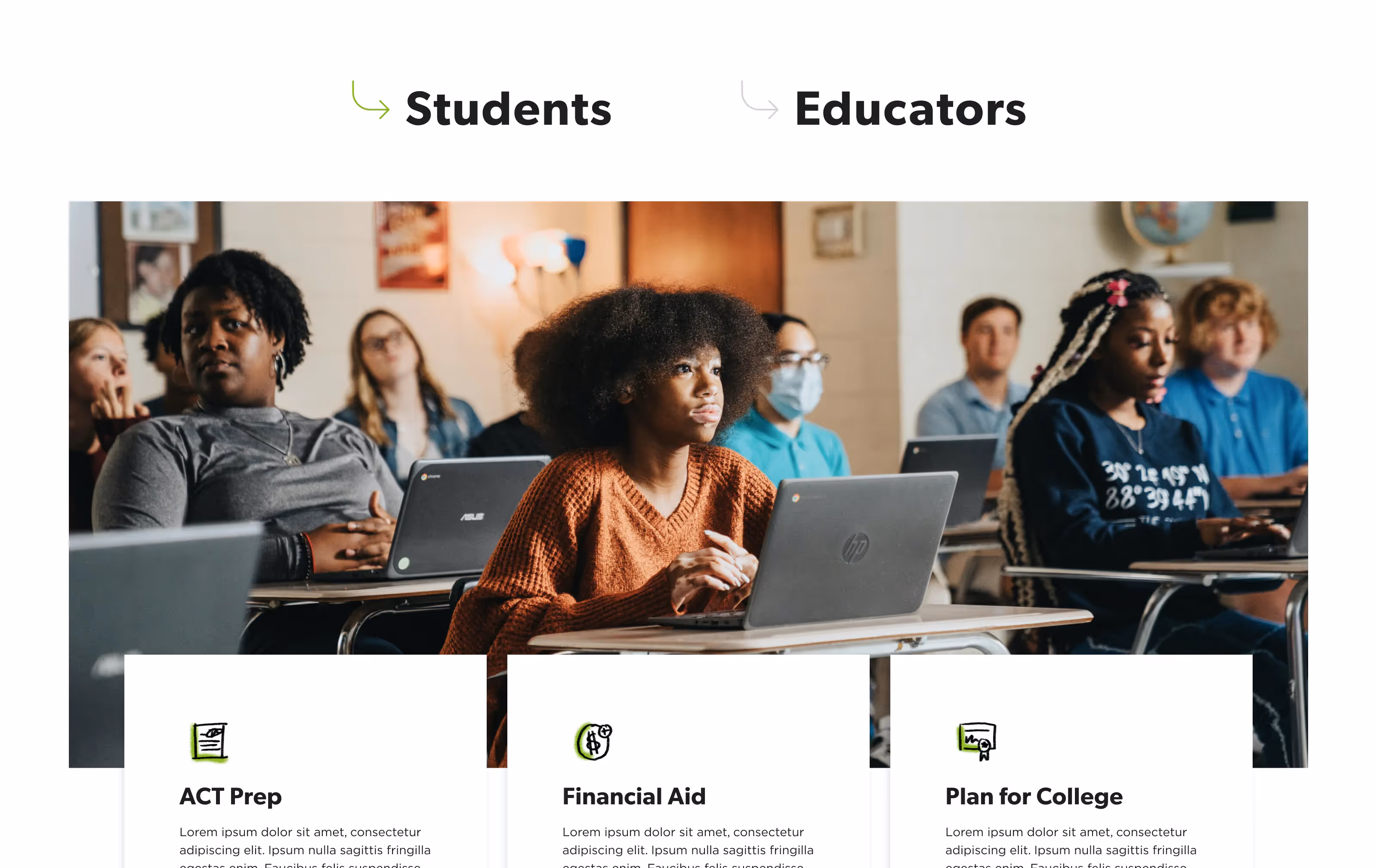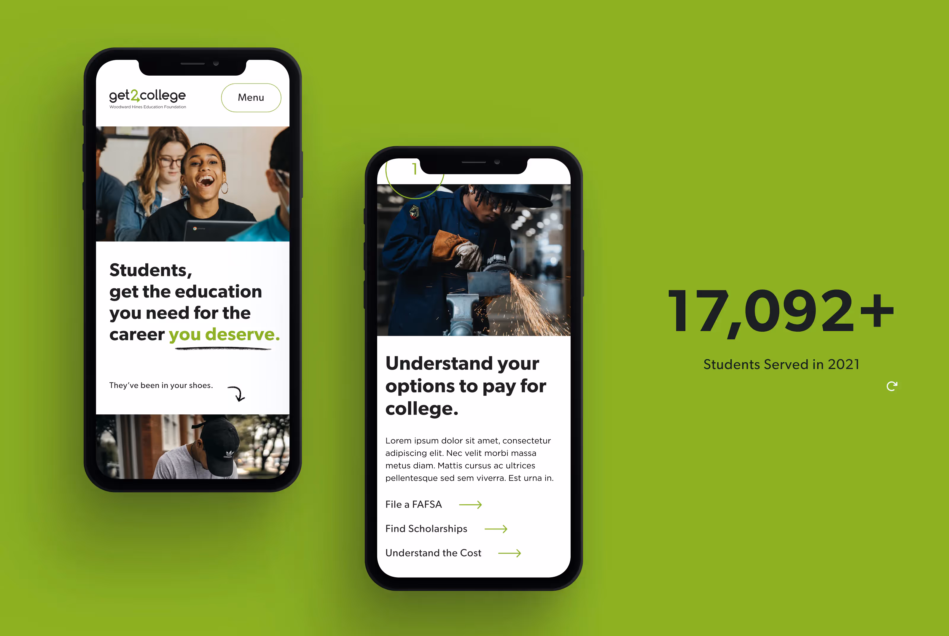 We partnered with Get2College to establish their online presence as the premier resource for guiding Mississippi students toward flourishing college and workforce careers through a comprehensive digital platform. Working closely with their passionate team, we created a dynamic website that addresses both students and educators head-on, allowing visitors to immediately access resources best suited for their specific needs with the click of a button. Our collaboration resulted in a robust yet streamlined content management system that encourages good hygiene while providing essential tools and resources that can be leveraged practically within the statewide school system. Through engaging interactions, animations, and a refreshed design system reflecting the organization's youthful spirit, we helped Get2College create an accessible journey that enables students and educators from all Mississippi communities to easily access guidance for their post-high school college and career paths, supporting their critical mission that all Mississippi students can attend college.