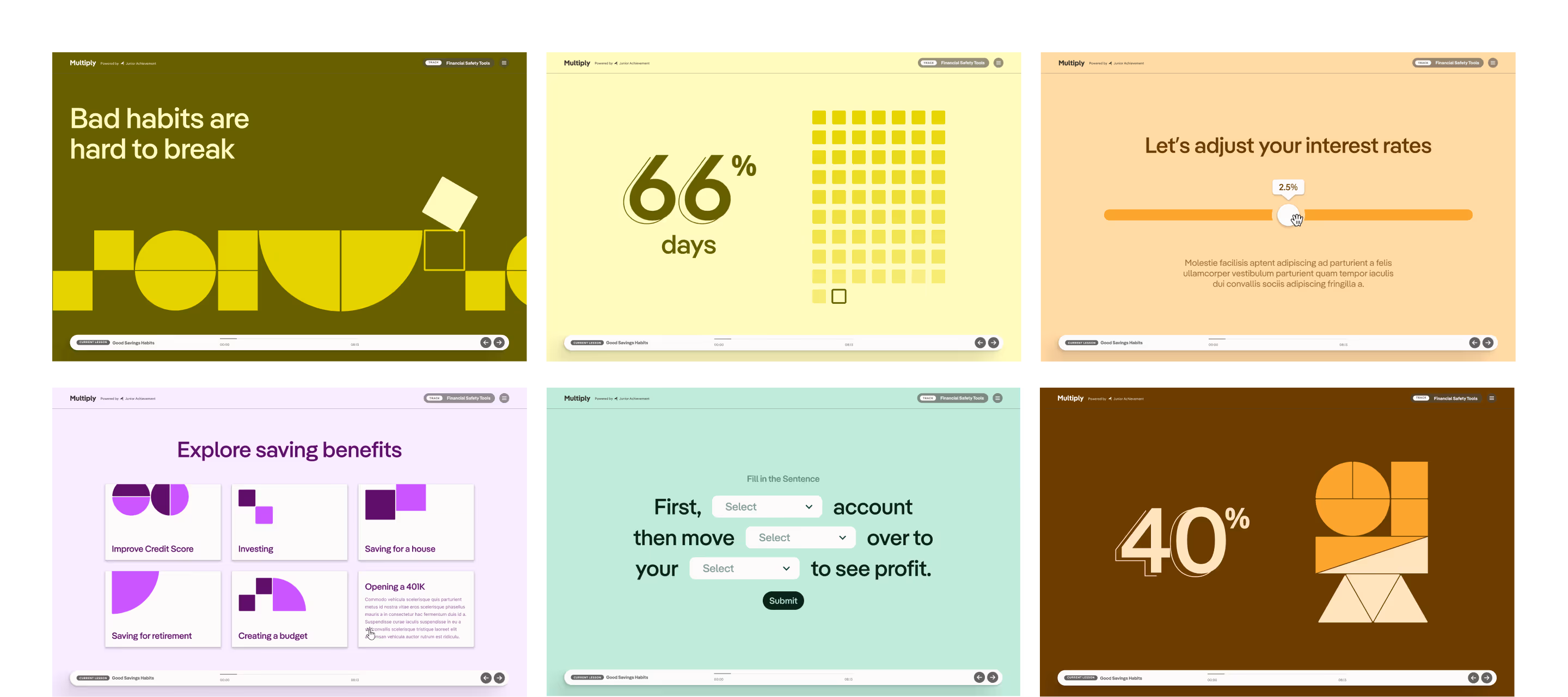 We partnered with Junior Achievement as a strategic partner to bring their vision for a comprehensive financial education platform to life through strategy, design, and development. Working after Junior Achievement established the educational content and mission, we mapped features to achieve their vision while accounting for technical and strategic implications that encourage learning versus creating shame and disappointment. To match Breadbox's encouraging and optimistic approach, the brand evolved into a bright, energetic, and lively experience with gamified badges, financial illustrations, and a scalable educational platform system. We built a robust WordPress learning platform using Lifter LMS with custom features, intentional gamification, expert-written content, and individualized progress tracking. The result provides companies with a free tool for employee financial education, covering skills like building credit, funding education, and investing, while giving Junior Achievement rights to expand the positive impact across multiple corporate sectors.