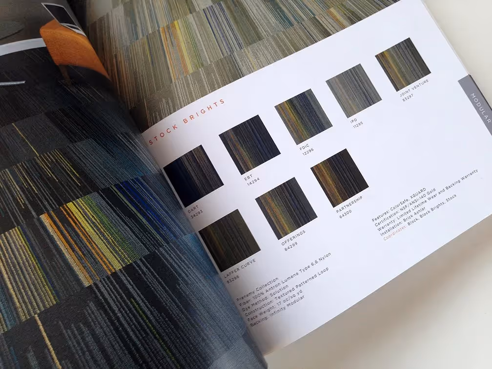 Whiteboard partnered with Mannington to honor their remarkable centennial achievement—100 years as a leading flooring company and five generations of family ownership. For their gala celebration, Whiteboard designed exquisitely elegant invitations that were letterpress printed by The Open Press, creating tangible pieces worthy of such a significant milestone. Beyond the celebration, Whiteboard collaborated with Mannington Commercial and backend development expert Rob Reagan of Iron Horse Software to revolutionize their product catalog system. The team created comprehensive print templates that seamlessly flow content from Mannington's website into beautifully designed print catalogs. This innovative system allows for easily updated and even customizable print catalogs, transforming how Mannington presents their commercial flooring solutions to clients and maintaining their competitive edge in the marketplace through both traditional craftsmanship and cutting-edge technology.