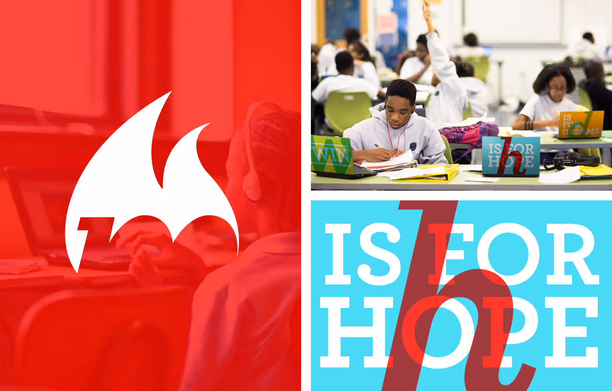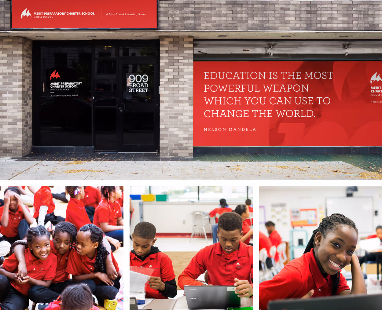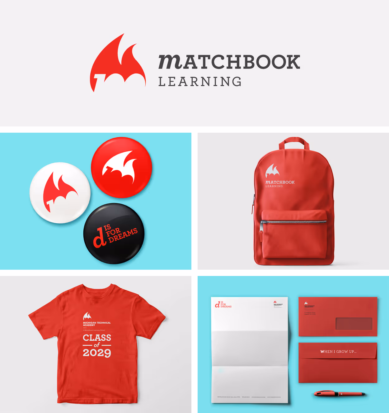 No matter your zip code or family background, all kids have dreams. By reminding students about their dreams, teachers can connect what they are learning in school in a more meaningful way. Whiteboard partnered with Matchbook Learning from their beginning, providing strategy and brand guidance as they built out their model for transforming America's most challenging schools. We used the insight that all children have dreams as the foundation of the brand, creating an uplifting visual identity through inspiring use of color, type, and imagery that featured Matchbook students. As they entered their first schools, we brought the brand to life with materials that reminded students to think beyond high school and connect their learning to their aspirations for the future.