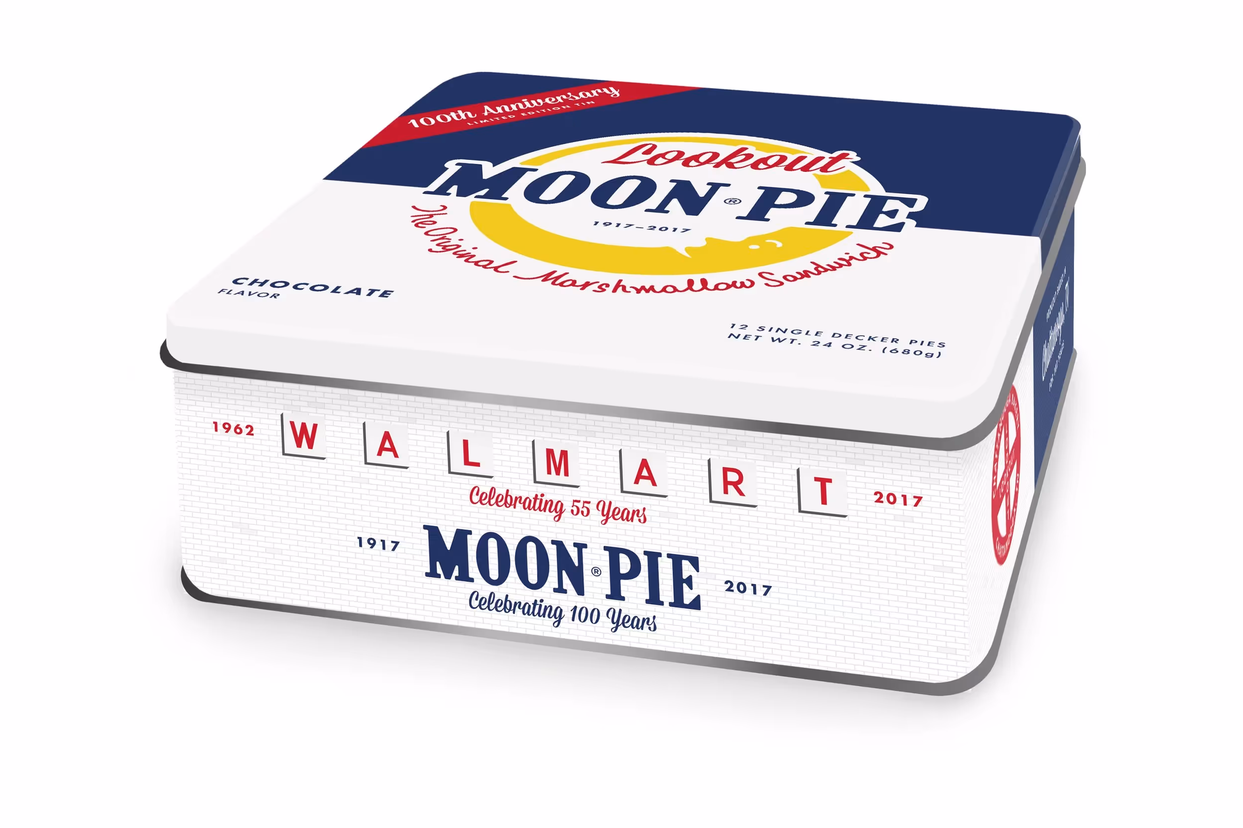 Following the remarkable success of our collectible tin campaign for Tractor Supply Co., MoonPie® approached Whiteboard to expand the program with new retail partners including Walmart and Cracker Barrel. The challenge was maintaining the collectible appeal while creating designs that would resonate with diverse retail audiences and celebrate different aspects of MoonPie's rich heritage. Our approach built on the proven success of the original tin program while exploring new creative territories. We developed fresh designs celebrating MoonPie's 100th Anniversary, honored classic designs from the brand's history, and created special edition offers tailored to each retail partner's unique customer base. Each tin was designed not just as packaging but as a collectible item that fans would want to keep long after enjoying the MoonPies inside. The expanded program successfully brought the nostalgic joy of MoonPie collecting to millions of new customers across major national retailers.