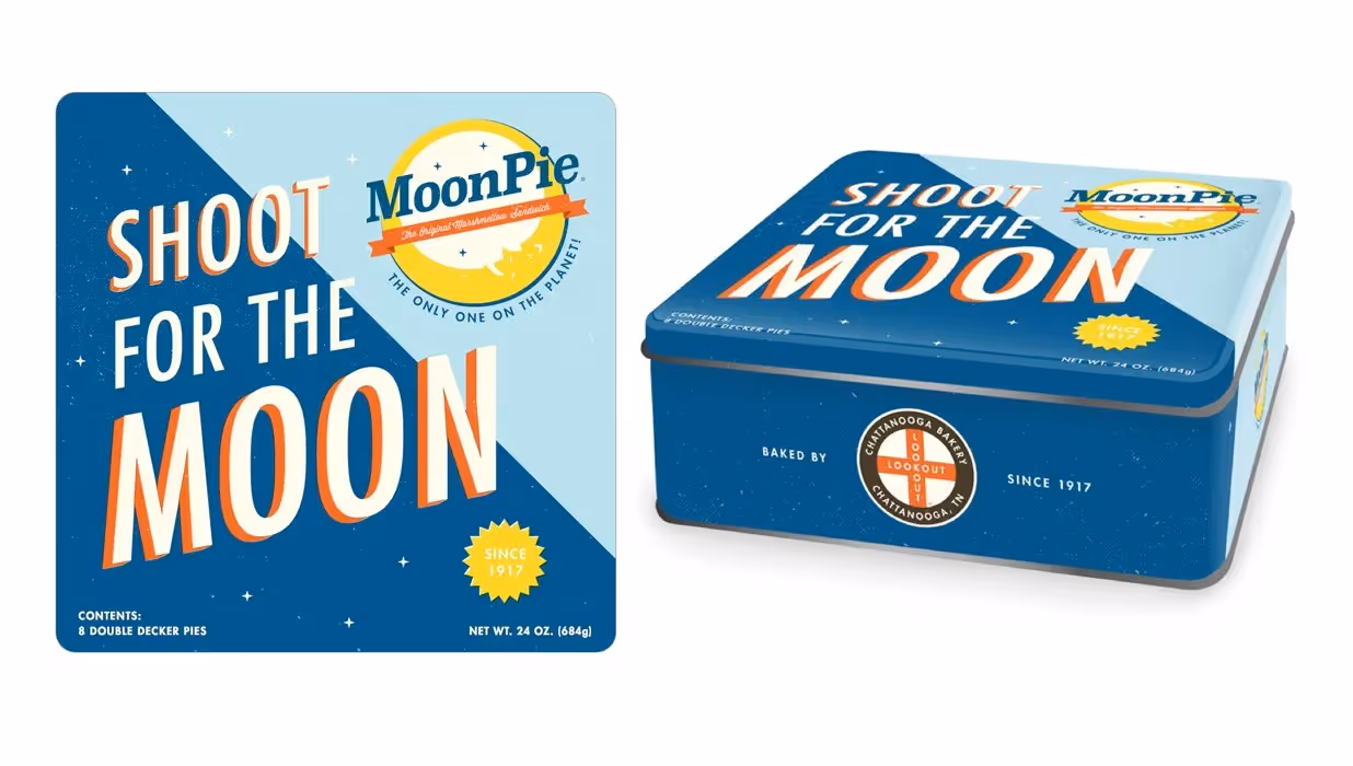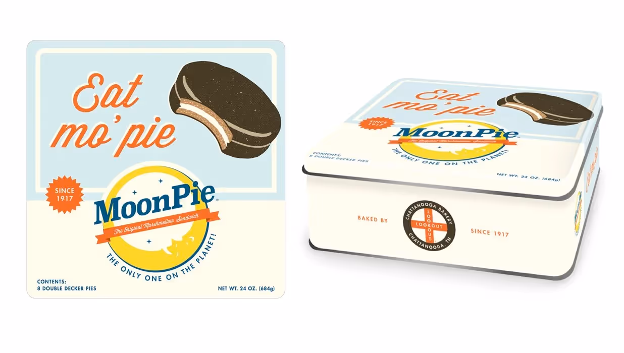 When Chattanooga Bakery wanted to celebrate MoonPies' nearly 100-year heritage through custom tin design, Whiteboard created concepts that honored the product's history while appealing to collectors and nostalgia enthusiasts.
