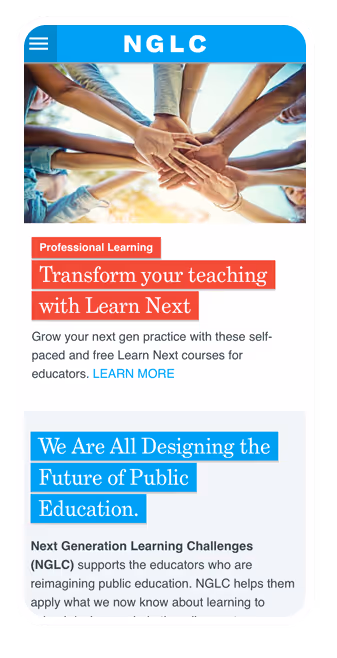 Through a collaborative approach and an open-source mentality, Next Generation Learning Challenges addresses the most urgent challenges in public education facing today's students.