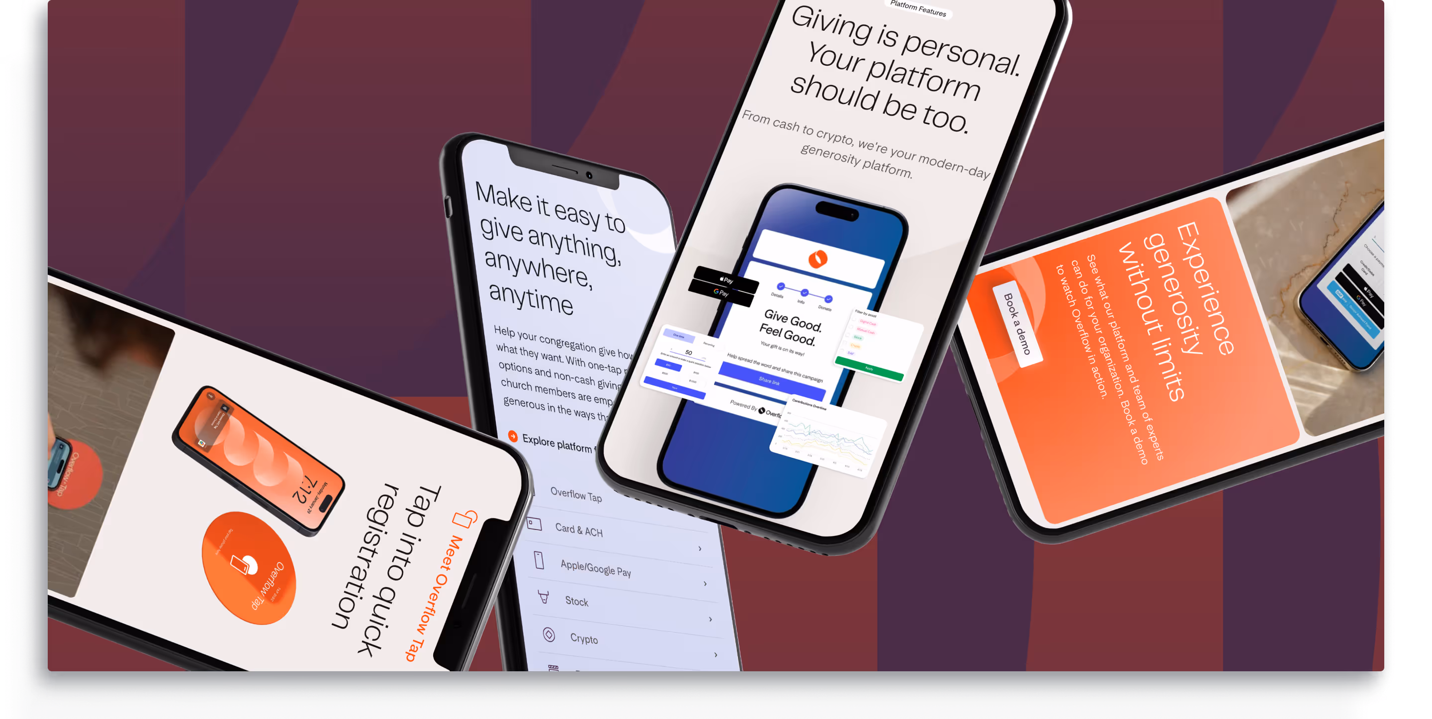We partnered with Overflow to craft a brand that seamlessly bridges FinTech innovation with purposeful giving, reimagining their strategy, messaging, and visual identity to reach visionary nonprofits, pastors, and financial decision-makers. Working closely with their team, we ensured Overflow remained anchored in Silicon Valley tech roots while expanding reach across diverse audiences. The design system features modular patterns and 3D objects that reinforce innovation and simplicity while keeping their human-centered mission central. We created a marketing website designed for growth, capturing value for both decision-makers and operators through clear insights tailored to unique needs. The platform demystifies complex revenue streams with grace, balancing soft, approachable elements with bold, vibrant visuals that emphasize seamless generosity as the core message for building a generous future where giving is effortless and impactful.