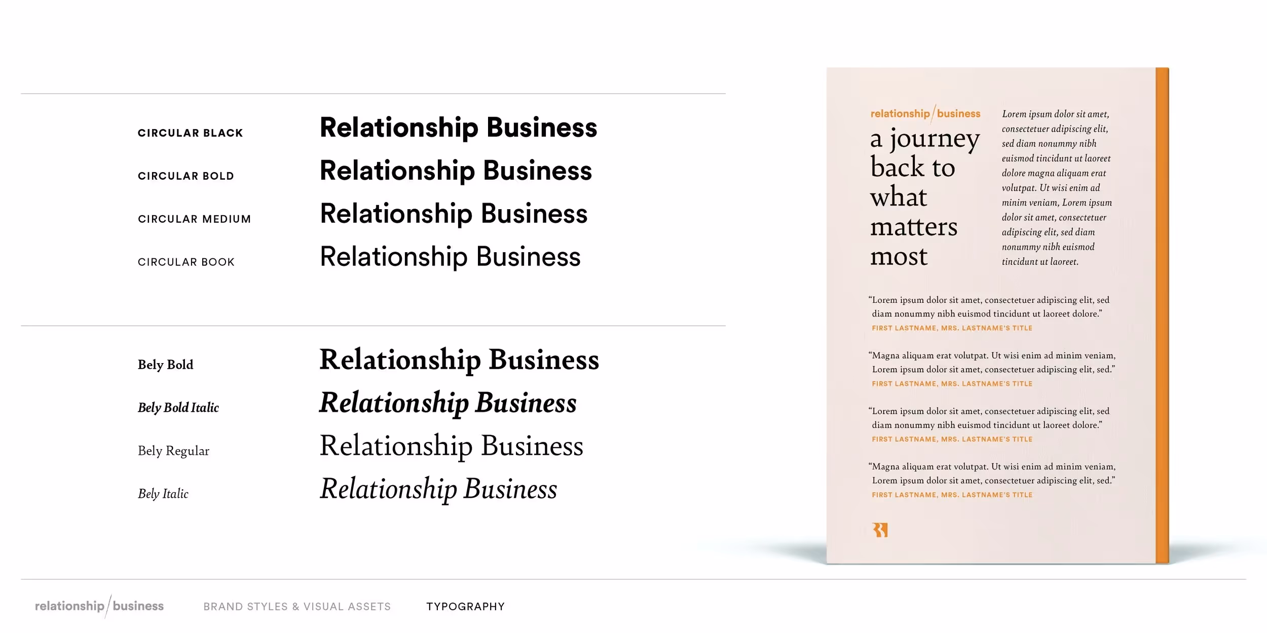 Whiteboard partnered with Kenny Morgan, founder of Goodstory and Counsel Creative, on his latest endeavor: Relationship Business. As a writer, podcaster, and coach, Kenny champions a powerful message of people-over-profit and relationships before business. Seeking a fresh perspective for this new venture, he approached us to build a flexible visual identity that could unite his many projects under one cohesive brand. The resulting system hinges on a versatile typographic strategy softened by a nature-made color palette and hand-drawn flourishes. This approach allows the brand to adapt across multiple mediums while maintaining the authentic, human-centered philosophy that defines Kenny's work. The identity system successfully captures the warmth and authenticity essential to Kenny's relationship-first business approach.