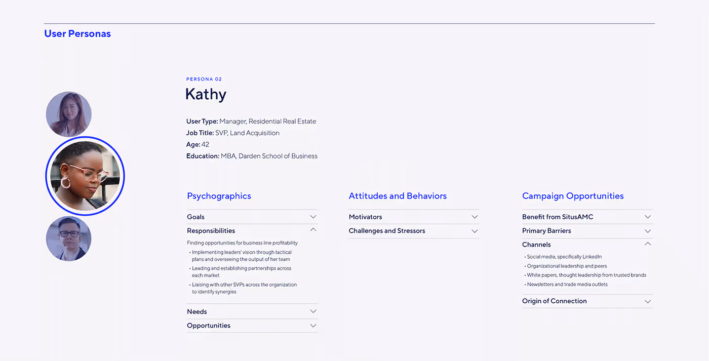 Backed by a new brand identity, emerging content marketing program, and nimble in-house team, SitusAMC was ready to elevate their position as the preferred partner in real estate finance. The target audience was familiar with the name, but largely unaware of SitusAMC's key benefit - the comprehensive support across the entire lifecycle of both commercial and residential real estate finance activity. Whiteboard partnered with SitusAMC, the world's leading provider of real estate finance solutions, to develop and launch a national brand awareness campaign that would reintroduce the organization's identity and help the audience reimagine SitusAMC's value. We segmented their audience based on primary business needs to create distinct messaging with hyper-specific targeting, crafted detailed personas and journey maps, and developed a creative platform rooted in brand identity that connected with audience voice through multiple rounds of pre-market testing to optimize creative performance.